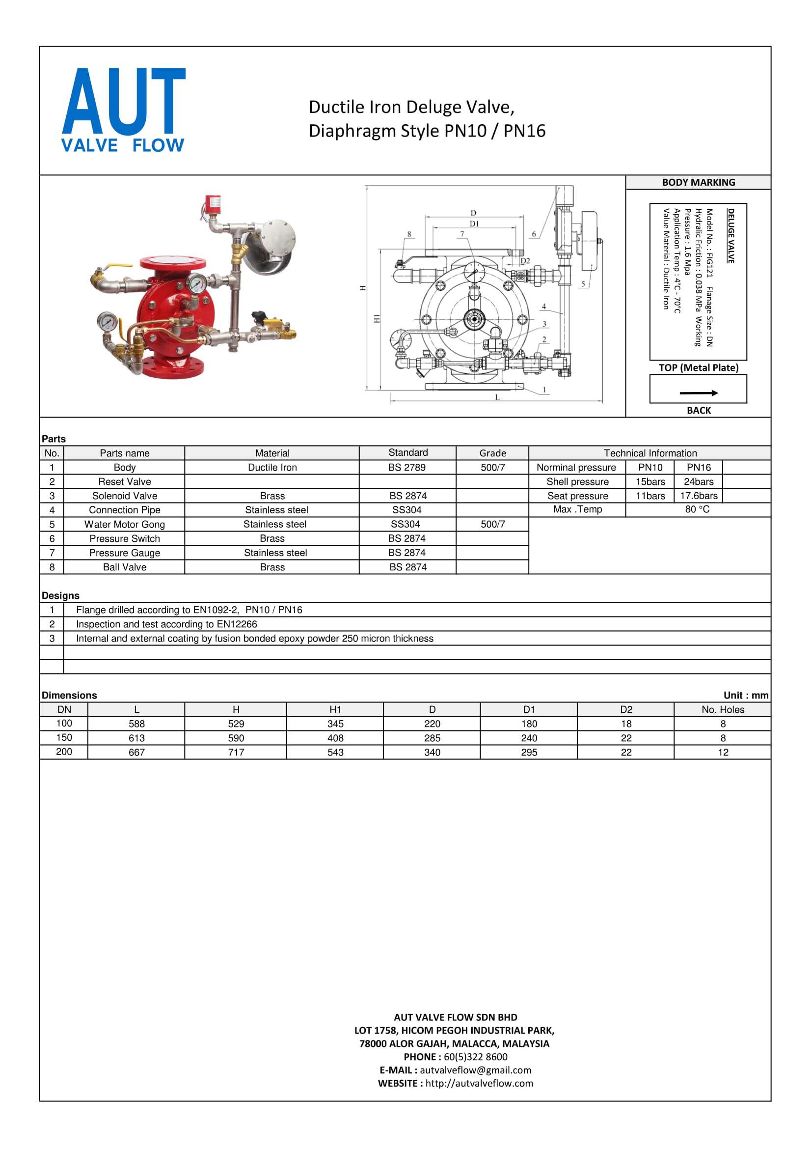 Van xả tràn AUT (tên tiếng anh: Deluge valve AUT) là một loại van an toàn đóng một vai trò vô cùng quan trọng trong hệ thống phòng cháy chữa cháy. là loại van điều chỉnh xả nhanh dòng nước trong hệ thống phun nước.
